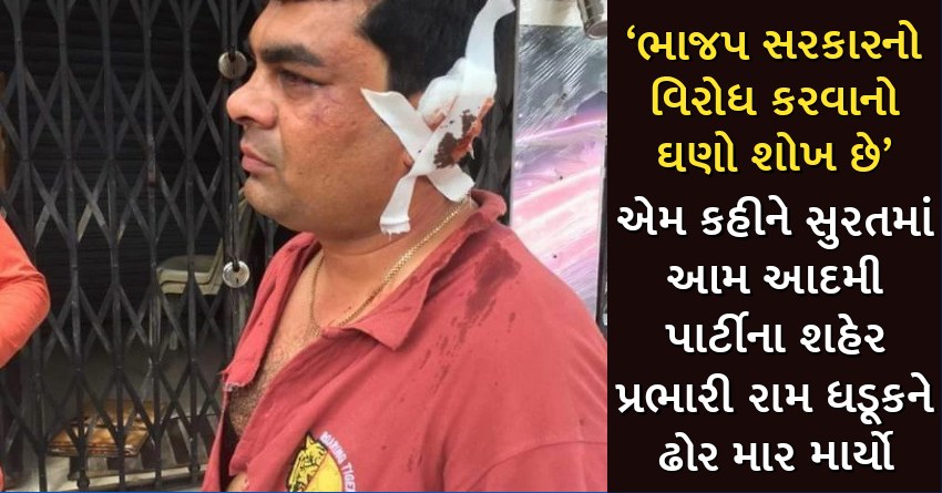 ‘ભાજપ સરકારનો વિરોધ કરવાનો ઘણો શોખ છે’ એમ કહીને સુરતમાં આમ આદમી પાર્ટીના શહેર પ્રભારી રામ ધડૂકને ઢોર માર માર્યો