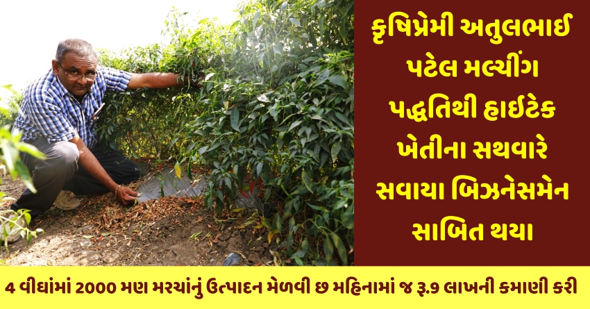 દક્ષિણ ગુજરાતના ઘણા શિક્ષિત ખેડૂતો ખેતીને આધુનિક ટચ આપીને પ્રયોગાત્મક ખેતી તરફ વળ્યા છે. આવા જ એક શિક્ષિત અને પ્રગતિશીલ ખેડૂત અતુલભાઈ પટેલે મલ્ચીંગ અને ડ્રીપ ઈરીગેશન દ્વારા મરચી, કેળ અને ટીંડોળાની ખેતી કરીને લાખોનું ઉત્પાદન મેળવીને અન્ય ખેડૂતોને પ્રેરણા પૂરી પાડી છે. મરચી, ટીંડોળા અને કેળની ખેતીના ત્રિવેણી સંગમ થકી લાખોની કમાણી આ ખેડૂતે કરી છે. તેમણે એક મુલાકાતમાં કહ્યું કે ખેતપેદાશોના ઓછા બજારભાવનો કાયમી ઉકેલ, આધુનિક ટેકનોલોજી અપનાવી જોઇએ કે જેથી ખેડૂતને સારો ઉતાર મળી શકે. હાલમાં તેમણે 4 વીઘામાં 2000 મણ મરચાનું ઉત્પાદન મેળવી છ મહિનામાં જ રૂ.9 લાખની કમાણી કરી છે.
