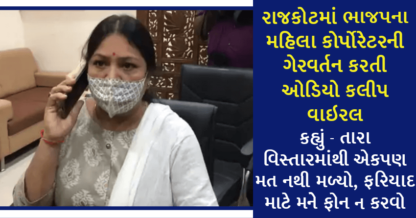 રાજકોટમાં ભાજપના મહિલા કોર્પોરેટરની ગેરવર્તન કરતી ઓડિયો કલીપ વાઇરલ, કહ્યું- તારા વિસ્તારમાંથી એકપણ મત નથી મળ્યો, ફરિયાદ માટે મને ફોન ન કરવો