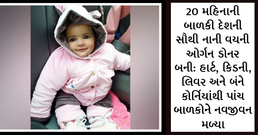 20 મહિનાની બાળકી દેશની સૌથી નાની વયની ઓર્ગન ડોનર બની: હાર્ટ, કિડની, લિવર અને બંને કોર્નિયાંથી પાંચ બાળકોને નવજીવન મળ્યા