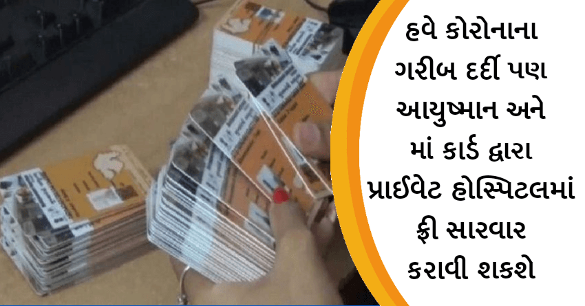 હવે કોરોનાના ગરીબ દર્દી પણ આયુષ્માન અને માં કાર્ડ દ્વારા પ્રાઈવેટ હોસ્પિટલમાં ફ્રી સારવાર કરાવી શકશે