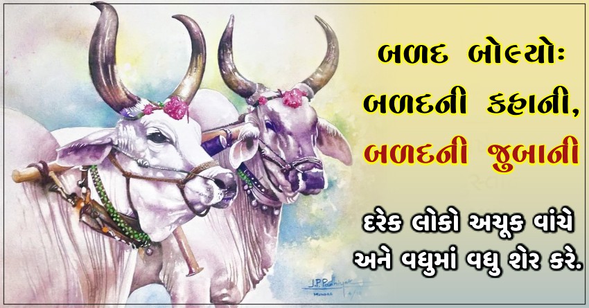 બળદે મારી સામે ત્રાંસી આંખે જોયું અને કહ્યું.. ખોટી ચિંતા ના કરો..હવે મારો મલક ભર્યો છે..હું છું અને મારી ઝીંદગી છે. એમ કહી ને બળદ તેના ખેડુત માલીક સામે છેલ્લી નજર કરીને જુનાં સંભારણા યાદ કરતો કરતો ધીમે ધીમે હાલી નીકળ્યો…