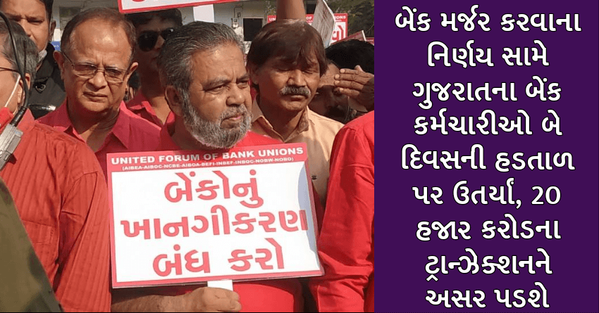 બેંક મર્જર કરવાના નિર્ણય સામે ગુજરાતના બેંક કર્મચારીઓ બે દિવસની હડતાળ પર ઉતર્યાં, 20 હજાર કરોડના ટ્રાન્ઝેક્શનને અસર પડશે