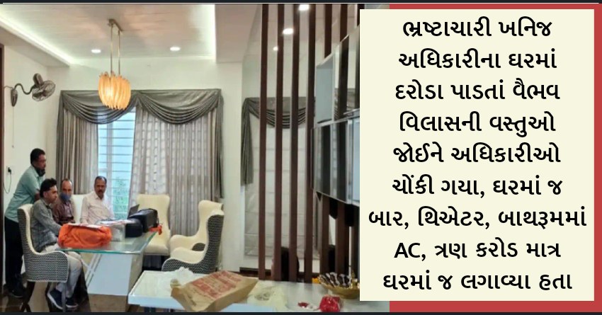 ભ્રષ્ટાચારી ખનિજ અધિકારીના ઘરમાં દરોડા પાડતાં વૈભવ વિલાસની વસ્તુઓ જોઈને અધિકારીઓ ચોંકી ગયા, ઘરમાં જ બાર, થિએટર, બાથરૂમમાં AC, ત્રણ કરોડ માત્ર ઘરમાં જ લગાવ્યા હતા
