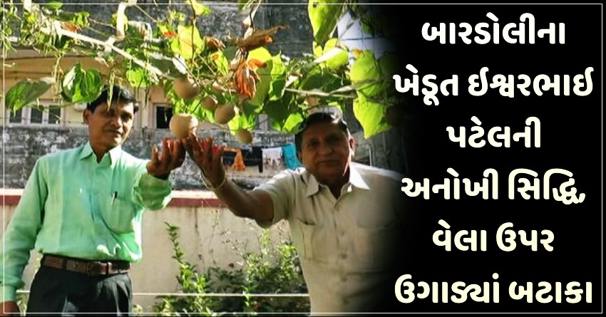 બારડોલીના મધ્યમાં આવેલી કપિલ નગરમાં રહેતા ઈશ્વરભાઈ પટેલ જે હાલ સરકારી નિવૃત કર્મચારી છે. જણે પોતાના કુશળ ખેતીના વિચારથી પોતાના જ વાળાનો સારો એવો ખેતી માટે ઉપયોગ કરી શાકભાજીનો રાજા એવા બટાકાને વેલા પર ઉછેરીવામાં સફળતા મળી છે. આમતો બટેકા કંદ મૂળ કેવાઈ છે જે જમીનની અંદર તેનો પાક લેવામાં આવે છે.