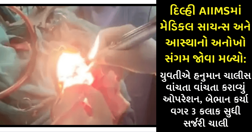 દિલ્હી AIIMSમાં ઓપરેશનનો એક અનોખો મામલો સામે આવ્યો છે. અહીં ગુરૂવારે 24 વર્ષની એક યુવતીની સર્જરી કરાવી, પણ આ સર્જરીની અનોખી વાત એ હતી કે યુવતીએ તેની સર્જરી હનુમાન ચાલીસ વાંચતા વાંચતા કરી. તેનું બ્રેન ટ્યૂમરનું ઓપરેશન થયું. આશ્ચર્યની વાત એ હતી કે 3 કલાક સુધી ચાલેલી આ સર્જરીમાં યુવતીને બેભાન કર્યા વગર કરાઈ હતી.