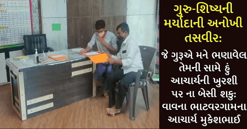 ગુરુ-શિષ્યની મર્યાદાની અનોખી તસવીર: જે ગુરૂએ મને ભણાવેલ તેમની સામે હું આચાર્યની ખુરશી પર ના બેસી શકુ: વાવના ભાટવરગામના આચાર્ય મુકેશભાઈ