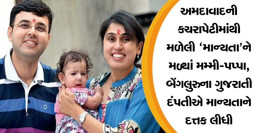 અમદાવાદની કચરાપેટીમાંથી મળેલી ‘માન્યતા’ને મળ્યાં મમ્મી-પપ્પા, બેંગલુરુના ગુજરાતી દંપતીએ માન્યતાને દત્તક લીધી