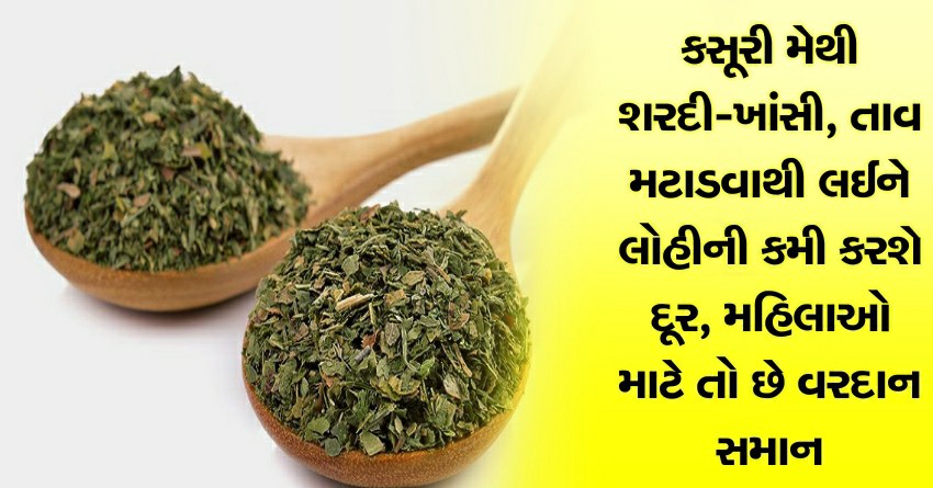 દરેકના ઘરમાં કસૂરી મેથીનો ઉપયોગ થતો હોય છે. મેથીની ભાજીને સૂકવીને કસૂરી મેથી તૈયાર કરવામાં આવે છે. તેમાં આયર્ન, મેંગ્નીઝ, કોપર, મેગ્નેશિયમ, ફોસ્ફરસ અને વિટામિન બી6 જેવા ન્યૂટ્રિઅન્ટ્સ હોય છે. આ કોઈ જડીબૂટીથી કમ નથી. આયુર્વેદમાં પણ કસૂરી મેથીને ઔષધી સમાન માનવામાં આવે છે. મહિલાઓ માટે કસૂરી મેથીનું સેવન ખૂબ જ ફાયદાકારક છે. કસૂરી મેથી મહિલાઓની ઘણી સમસ્યાઓ દૂર કરવામાં મદદ કરે છે. ચાલો જાણીએ કસૂરી મેથી મહિલાઓની કઈ-કઈ સમસ્યાઓમાં લાભકારી છે.