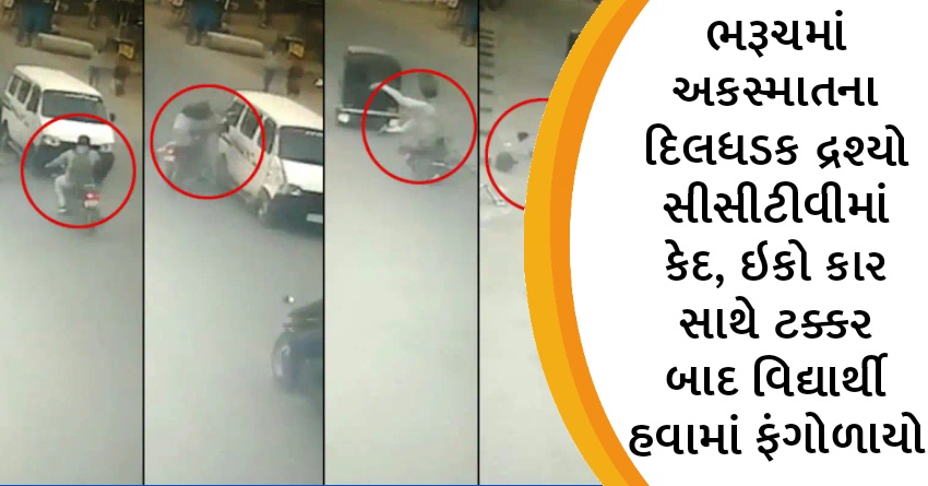 ભરૂચમાં અકસ્માતના દિલધડક દ્રશ્યો સીસીટીવીમાં કેદ, ઇકો કાર સાથે ટક્કર બાદ વિદ્યાર્થી હવામાં ફંગોળાયો