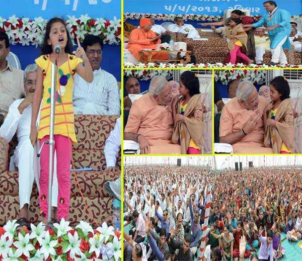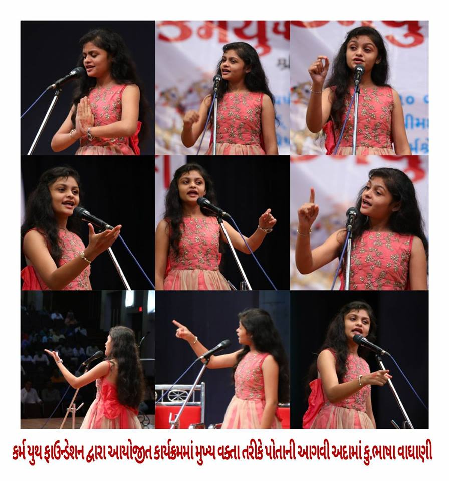 ભાષા વાઘાણી નામની દસેક વર્ષની વર્ષની બાળકીની હતી ત્યારે સૌમ્ય સ્પીચને લોકો એકીટસે સાંભળી રહ્યા હતા. એટલુ જ નહીં ભાષાએ પોતાના પ્રવચન દરમિયાન ઉપસ્થિત તમામ લોકોનો જમણો હાથ ઉંચો કરાવી એક શપથ પણ લેવડાવી હતી.