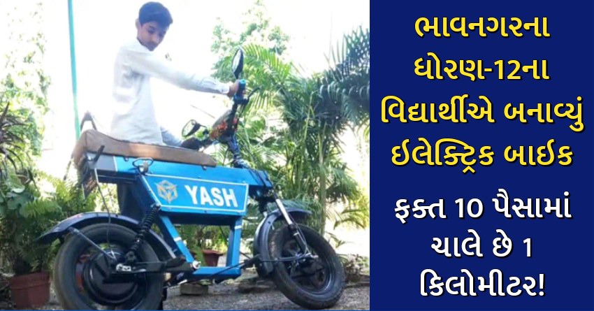 ભાવનગરના ધોરણ-12ના વિદ્યાર્થીએ બનાવ્યું ઇલેક્ટ્રિક બાઇક, ફક્ત 10 પૈસામાં ચાલે છે 1 કિલોમીટર!