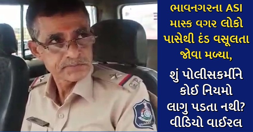 ભાવનગરના ASI માસ્ક વગર લોકો પાસેથી દંડ વસૂલતા જોવા મળ્યા, શું પોલીસકર્મીને કોઈ નિયમો લાગુ પડતા નથી? વીડિયો વાઈરલ