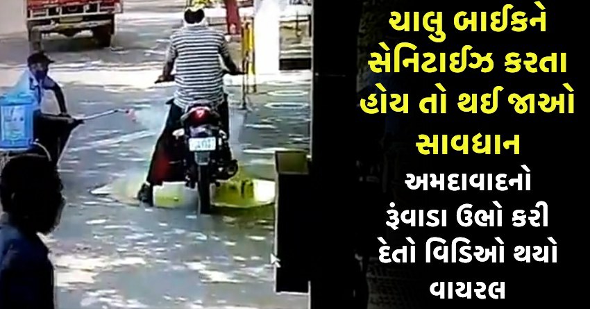 ચાલુ બાઈકને સેનિટાઈઝ કરતા હોય તો થઈ જાઓ સાવધાન, અમદાવાદનો રૂંવાડા ઉભો કરી દેતો વિડિઓ થયો વાયરલ