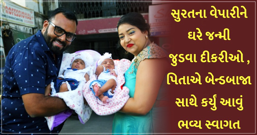 સુરતના વેપારીને ઘરે જન્મી જુડવા દીકરીઓ , પિતાએ બેન્ડબાજા સાથે કર્યું આવું ભવ્ય સ્વાગત