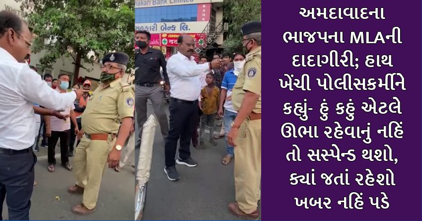 અમદાવાદના ભાજપના MLAની દાદાગીરી; હાથ ખેંચી પોલીસકર્મીને કહ્યું- હું કહું એટલે ઊભા રહેવાનું નહિં તો સસ્પેન્ડ થશો, ક્યાં જતાં રહેશો ખબર નહિં પડે
