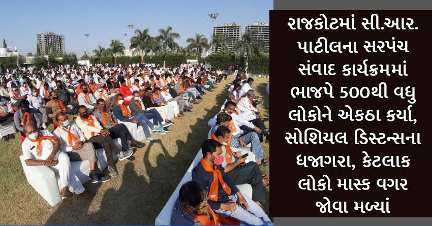 રાજકોટમાં સી.આર.પાટીલનો સરપંચ સંવાદ કાર્યક્રમમાં ભાજપે 500થી વધુ લોકોને એકઠા કર્યા, સોશિયલ ડિસ્ટન્સના ધજાગરા, કેટલાક લોકો માસ્ક વગર જોવા મળ્યાં