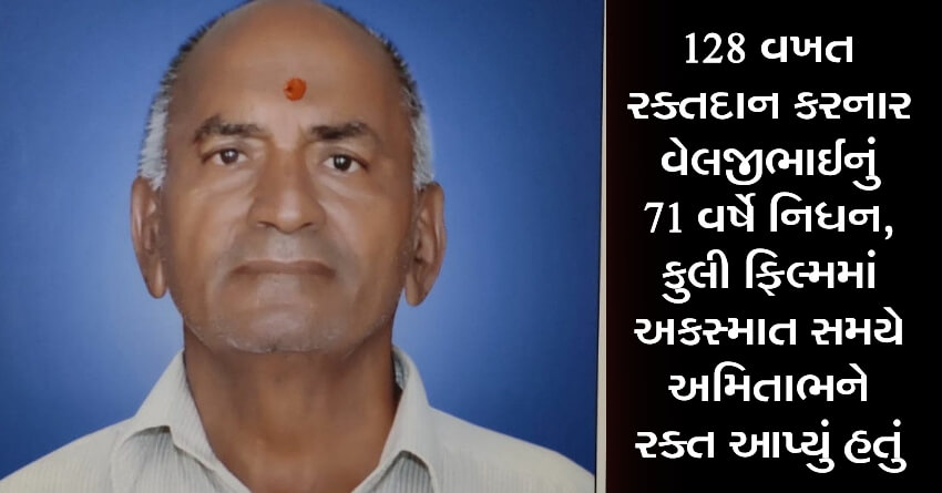 128 વખત રક્તદાન કરનાર વેલજીભાઈનું 71 વર્ષે નિધન, કુલી ફિલ્મમાં અકસ્માત સમયે અમિતાભને રક્ત આપ્યું હતું