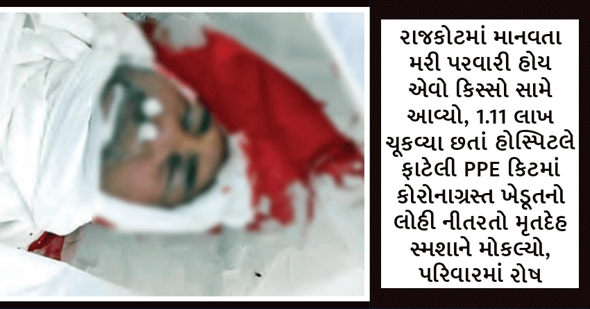 રાજકોટમાં માનવતા મરી પરવારી હોય એવો કિસ્સો સામે આવ્યો, 1.11 લાખ ચૂકવ્યા છતાં હોસ્પિટલે ફાટેલી PPE કિટમાં કોરોનાગ્રસ્ત ખેડૂતનો લોહી નીતરતો મૃતદેહ સ્મશાને મોકલ્યો, પરિવારમાં રોષ