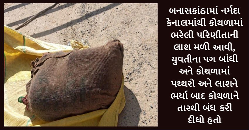 બનાસકાંઠામાં નર્મદા કેનાલમાંથી કોથળામાં ભરેલી પરિણીતાની લાશ મળી આવી, યુવતીના પગ બાંધી અને કોથળામાં પથ્થરો અને લાશને ભર્યા બાદ કોથળાને તારથી બંધ કરી દીધો હતો
