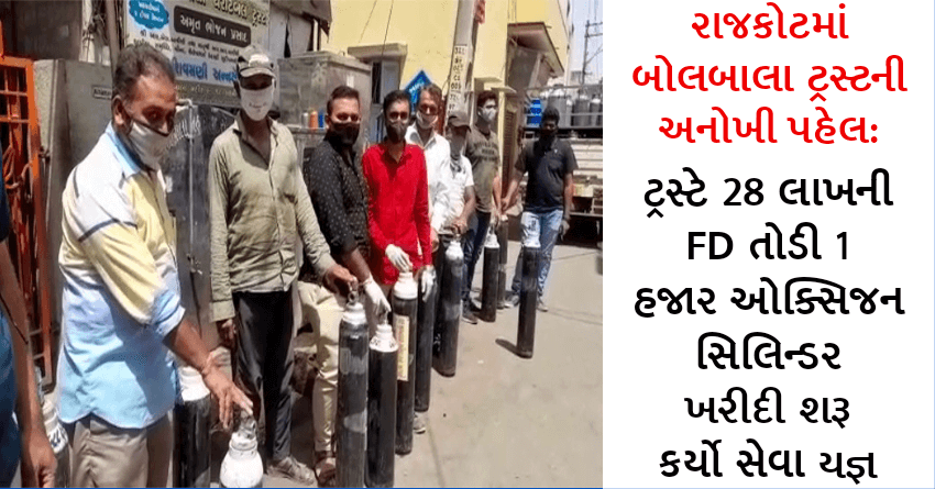 રાજકોટમાં બોલબાલા ટ્રસ્ટની અનોખી પહેલ: ટ્રસ્ટે 28 લાખની FD તોડી 1 હજાર ઓક્સિજન સિલિન્ડર ખરીદી શરૂ કર્યો સેવા યજ્ઞ