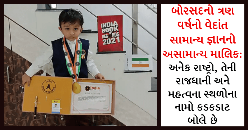 બોરસદનો ત્રણ વર્ષનો વેદાંત સામાન્ય જ્ઞાનનો અસામાન્ય માલિક: અનેક રાષ્ટ્રો, તેની રાજધાની અને મહત્વના સ્થળોના નામો કડકડાટ બોલે છે