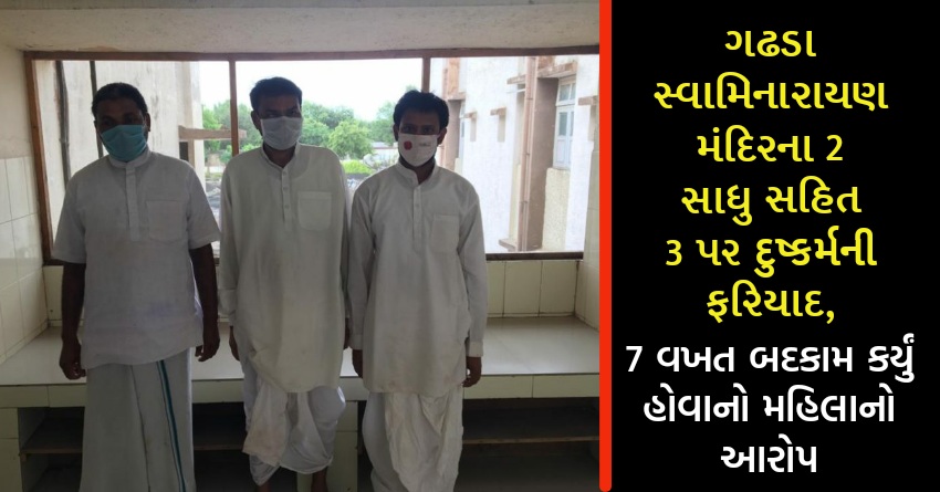 ગઢડા સ્વામિનારાયણ મંદિરના 2 સાધુ સહિત 3 પર દુષ્કર્મની ફરિયાદ, 7 વખત બદકામ કર્યું હોવાનો મહિલાનો આરોપ