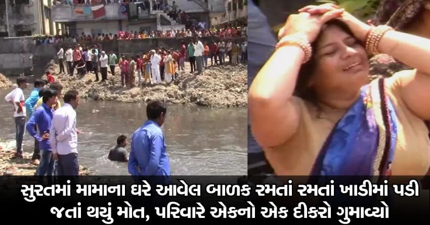 સુરતમાં મામાના ઘરે આવેલ બાળક રમતાં રમતાં ખાડીમાં પડી જતાં થયું મોત, પરિવારે એકનો એક દીકરો ગુમાવ્યો