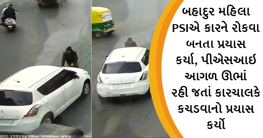 બહાદુર મહિલા PSIએ કારને રોકવા બનતા પ્રયાસ કર્યા, પીએસઆઇ આગળ ઊભાં રહી જતાં કારચાલકે કચડવાનો પ્રયાસ કર્યો
