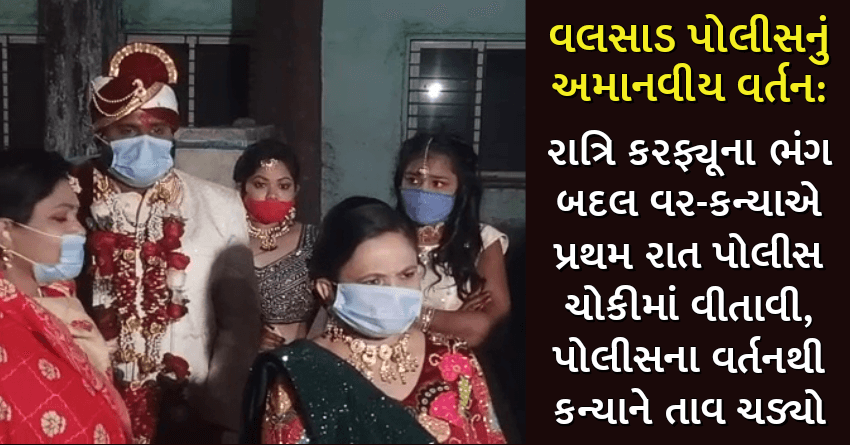 વલસાડ પોલીસનું અમાનવીય વર્તન: રાત્રિ કરફ્યૂના ભંગ બદલ વર-કન્યાએ પ્રથમ રાત પોલીસ ચોકીમાં વીતાવી, પોલીસના વર્તનથી કન્યાને તાવ ચડ્યો