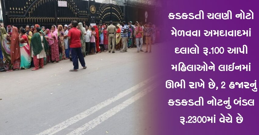 કડકડતી ચલણી નોટો મેળવવા અમદાવાદમાં દલાલો રૂ.100 આપી મહિલાઓને લાઈનમાં ઊભી રાખે છે, 2 હજારનું કડકડતી નોટનું બંડલ રૂ.2300માં વેચે છે