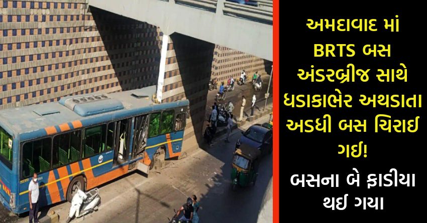 અમદાવાદ માં BRTS બસ અંડરબ્રીજ સાથે ધડાકાભેર અથડાતા અડધી બસ ચિરાઈ ગઈ! બસના બે ફાડીયા થઈ ગયા