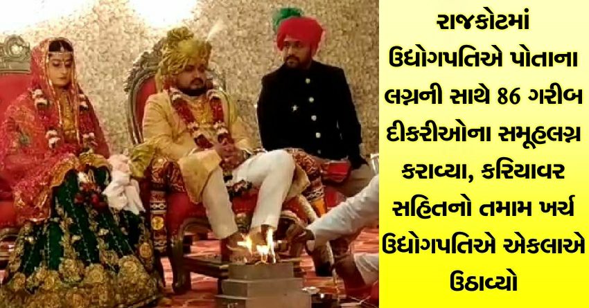 રાજકોટમાં ઉદ્યોગપતિએ પોતાના લગ્નની સાથે 86 ગરીબ દીકરીઓના સમૂહલગ્ન કરાવ્યા, કરિયાવર સહિતનો તમામ ખર્ચ ઉદ્યોગપતિએ એકલાએ ઉઠાવ્યો