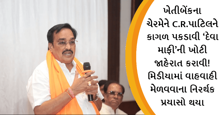 ખેતીબેંકના ચેરમેને C.R.પાટિલને કાગળ પકડાવી ‘દેવા માફી’ની ખોટી જાહેરાત કરાવી! મિડીયામાં વાહવાહી મેળવવાના નિરર્થક પ્રયાસો થયા