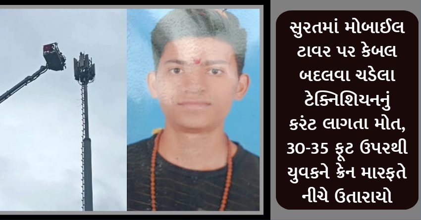 સુરતમાં મોબાઈલ ટાવર પર કેબલ બદલવા ચડેલા ટેક્નિશિયનનું કરંટ લાગતા મોત, 30-35 ફૂટ ઉપરથી યુવકને ક્રેન મારફતે નીચે ઉતારાયો