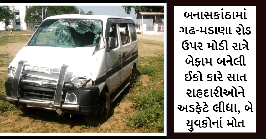 બનાસકાંઠામાં ગઢ-મડાણા રોડ ઉપર મોડી રાત્રે બેફામ બનેલી ઈકો કારે સાત રાહદારીઓને અડફેટે લીધા, બે યુવકોનાં મોત