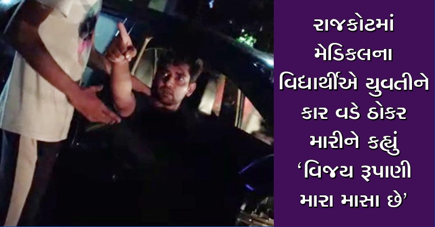 રાજકોટમાં મેડિકલના વિદ્યાર્થીએ યુવતીને કાર વડે ઠોકર મારીને કહ્યું ‘ વિજય રૂપાણી મારા માસા છે’
