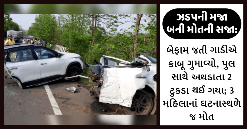 ઝડપની મજા બની મોતની સજા: બેફામ જતી ગાડીએ કાબૂ ગુમાવ્યો, પુલ સાથે અથડાતા 2 ટુકડા થઈ ગયા; 3 મહિલાનાં ઘટનાસ્થળે જ મોત