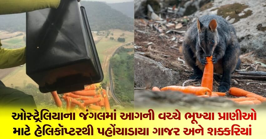 ઓસ્ટ્રેલિયામાં જંગલની આગ ઓલવવા માટે ફાયર ફાઈટર્સ ખડેપગે કામ કરી રહ્યા છે. હાલમાં જ ન્યૂ સાઉથ વેલ્સ રાજ્યમાં વાઈલ્ડલાઈફ સર્વિસના સ્ટાફે હેલિકૉપ્ટરમાંથી જંગલમાં રહેલા પ્રાણીઓ માટે તાજા શાકભાજીનો વરસાદ કર્યો હતો. તે લોકોએ હેલિકૉપ્ટરમાંથી ગાજર સહિત અન્ય કુલ 2200 કિલો શાકભાજી જંગલમાં ફેંક્યા હતા.
