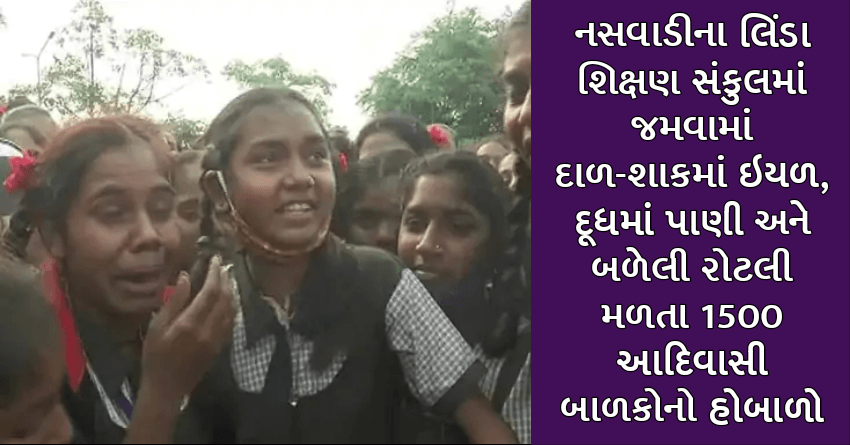 નસવાડીના લિંડા શિક્ષણ સંકુલમાં જમવામાં દાળ-શાકમાં ઇયળ, દૂધમાં પાણી અને બળેલી રોટલી મળતા 1500 આદિવાસી બાળકોનો હોબાળો