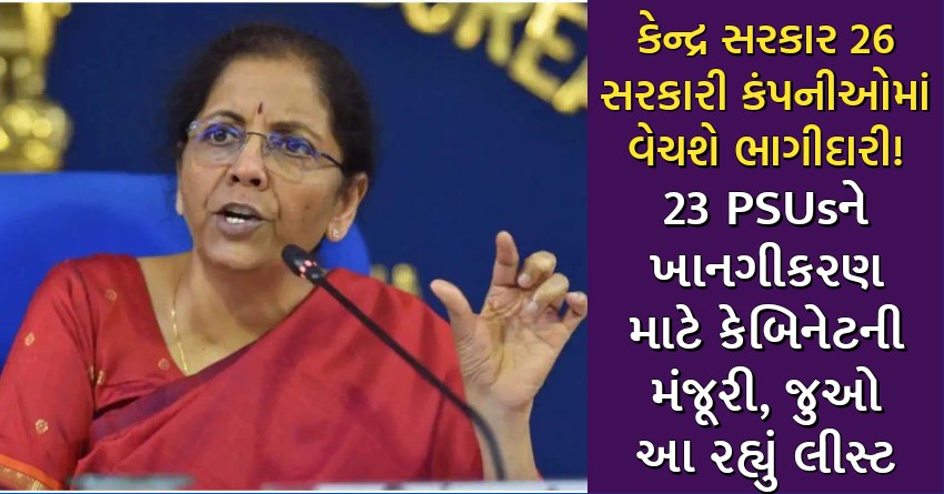 કેન્દ્ર સરકાર 26 સરકારી કંપનીઓમાં વેચશે ભાગીદારી! 23 PSUsને ખાનગીકરણ માટે કેબિનેટની મંજૂરી, જુઓ આ રહ્યું લીસ્ટ