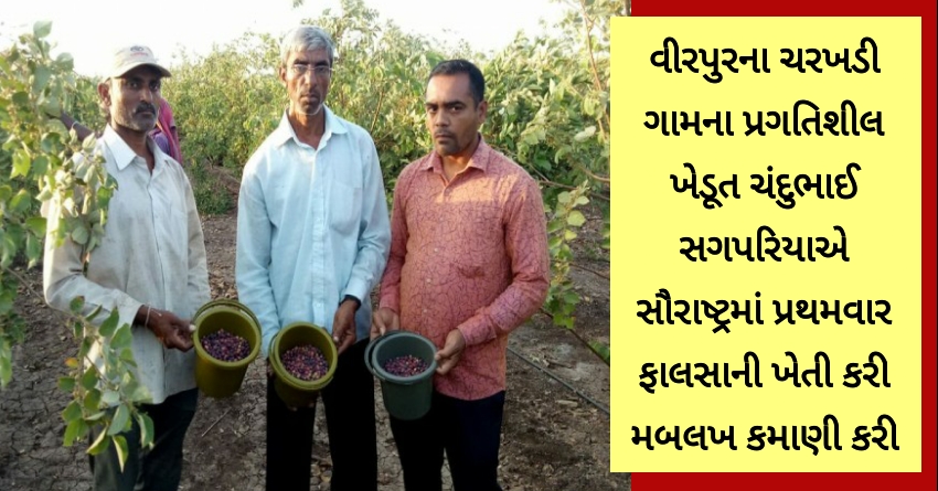 વીરપુરના ચરખડી ગામના પ્રગતિશીલ ખેડૂત ચંદુભાઈ સગપરિયાએ સૌરાષ્ટ્રમાં પ્રથમવાર ફાલસાની ખેતી કરી મબલખ કમાણી કરી