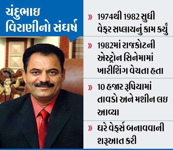 ૧૯૮૯ સુધી આ માણસ ઘરે તાવડામાં બટાટાની વેફર તળીને તેને રાજકોટનાં સિનેમાઘરોમાં વહેંચતો હતો. આજે તેની કંપની જગતની મલ્ટીનેશનલ કંપનીઓને દાદ નથી આપતી. તેનું નામ છે ચંદુભાઇ વિરાણી. નામ કદાચ વાચકોને અજાણ્યું લાગશે, તેમની બ્રાન્ડ સાવ જાણીતી છે: બાલાજી વેફર્સ. બાલાજી આજે દરરોજ ૩૫,૦૦,૦૦૦ પેકેટ વેફર્સ, ચટાકા પટાકા, ચેવડો, દાળ વગેરે નાસ્તાનું ઉત્પાદન કરે છે. વેફર્સમાં બાલાજીનો દબદબો એવો છે કે ગુજરાતનું ૮૦ ટકા માર્કેટ તેમના હાથમાં છે. મહાકાય મલ્ટિનેશનલ કંપનીઓ બાલાજીને હંફાવી શકી નથી, પોતે હાંફી ગઇ છે. ન કોઇ માર્કેટિંગ, ન ડીલર માટે કોઇ સ્કીમ, સેલ્સનું કોઇ ડિપાર્ટમેન્ટ નહીં અને મેનેજરોની ભરમાર નહીં, છતાં ૩૫૦ કરોડની કંપની સતત વિકાસકૂચ કરતી રહે છે. ચંદુભાઇ વિરાણીની આ વિકાસયાત્રાનું રહસ્ય શું છે?