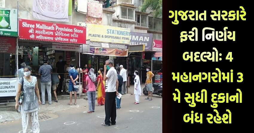 ગુજરાત સરકારે ફરી નિર્ણય બદલ્યોઃ 4 મહાનગરોમાં 3 મે સુધી દુકાનો બંધ રહેશે