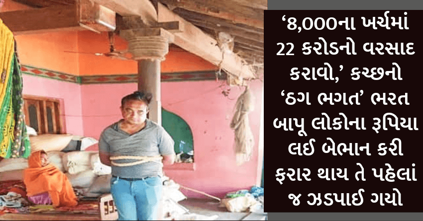 ‘8,000ના ખર્ચમાં 22 કરોડનો વરસાદ કરાવો,’ કચ્છનો ‘ઠગ ભગત’ ભરત બાપૂ લોકોના રૂપિયા લઈ બેભાન કરી ફરાર થાય તે પહેલાં જ ઝડપાઈ ગયો
