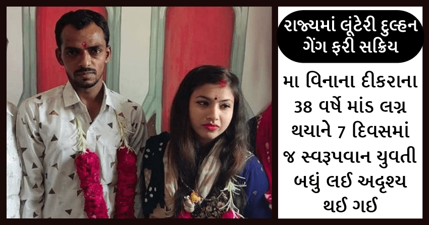 રાજ્યમાં લૂંટેરી દુલ્હન ગેંગ ફરી સક્રિય: મા વિનાના દીકરાના 38 વર્ષે માંડ લગ્ન થયાને 7 દિવસમાં જ સ્વરૂપવાન યુવતી બધું લઈ અદૃશ્ય થઈ ગઈ