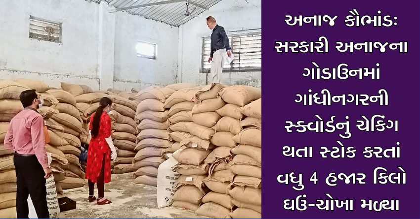 અનાજ કૌભાંડ: સરકારી અનાજના ગોડાઉનમાં ગાંધીનગરની સ્ક્વોર્ડનું ચેકિંગ થતા સ્ટોક કરતાં વધુ 4 હજાર કિલો ઘઉં-ચોખા મળ્યા