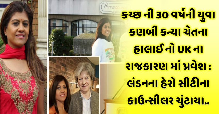કચ્છ ની ૩૦ વર્ષની યુવા કણબી કન્યા ચેતના હાલાઈ નો UK ના રાજકારણ માં પ્રવેશ : લંડનના હેરો સીટીના કાઉન્સીલર ચુંટાયા..