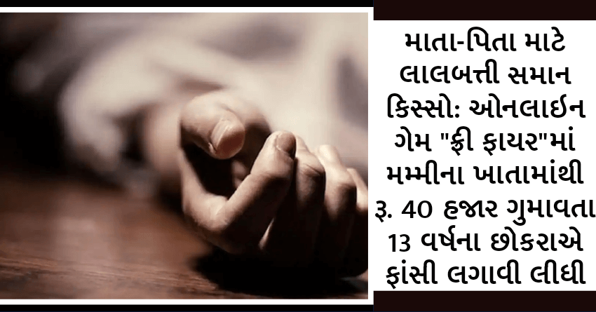માતા-પિતા માટે લાલબત્તી સમાન કિસ્સો: ઓનલાઇન ગેમ “ફ્રી ફાયર”માં મમ્મીના ખાતામાંથી રૂ. 40 હજાર ગુમાવતા 13 વર્ષના છોકરાએ ફાંસી લગાવી લીધી