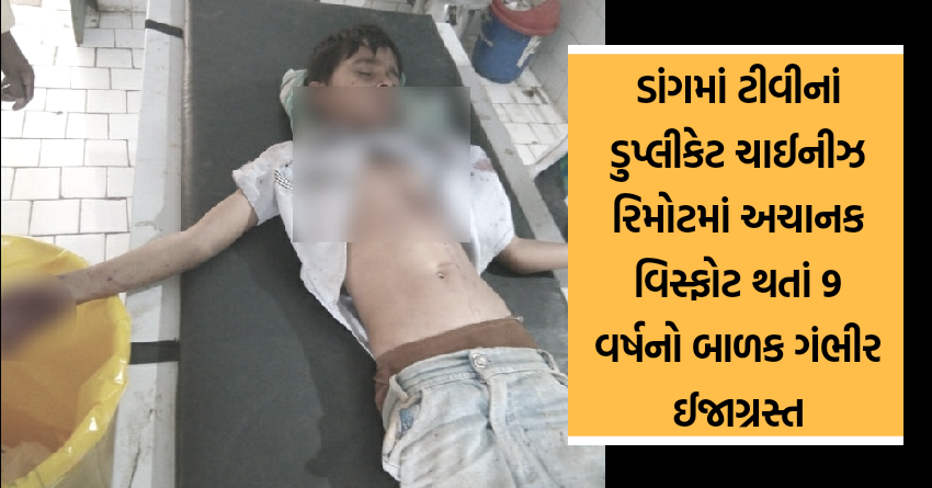 ડાંગમાં ટીવીનાં ડુપ્લીકેટ ચાઈનીઝ રિમોટમાં અચાનક વિસ્ફોટ થતાં 9 વર્ષનો બાળક ગંભીર ઈજાગ્રસ્ત